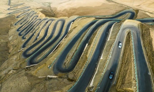 NW China's Xinjiang. It has 208 bends and drops a vertical distance of 1000m [3,281 ft].