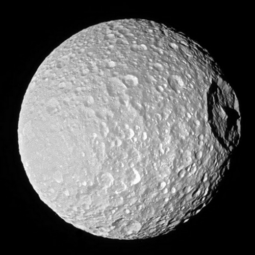 This is Mimas, a moon of Saturn, aka the Death Star moon for obvious reason. Having a mean