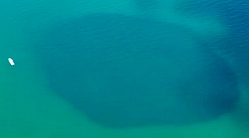 This is the Taam Ja' Blue Hole, located in Chetumal Bay in the Yucatan Peninsula,