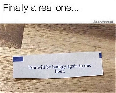 Sunny: "My fortune said 'that wasn't chicken'."