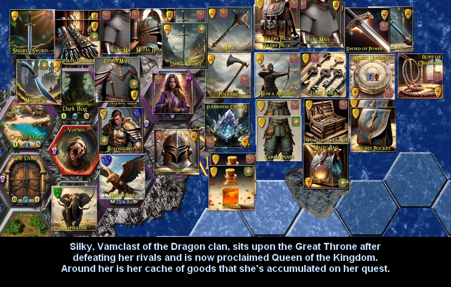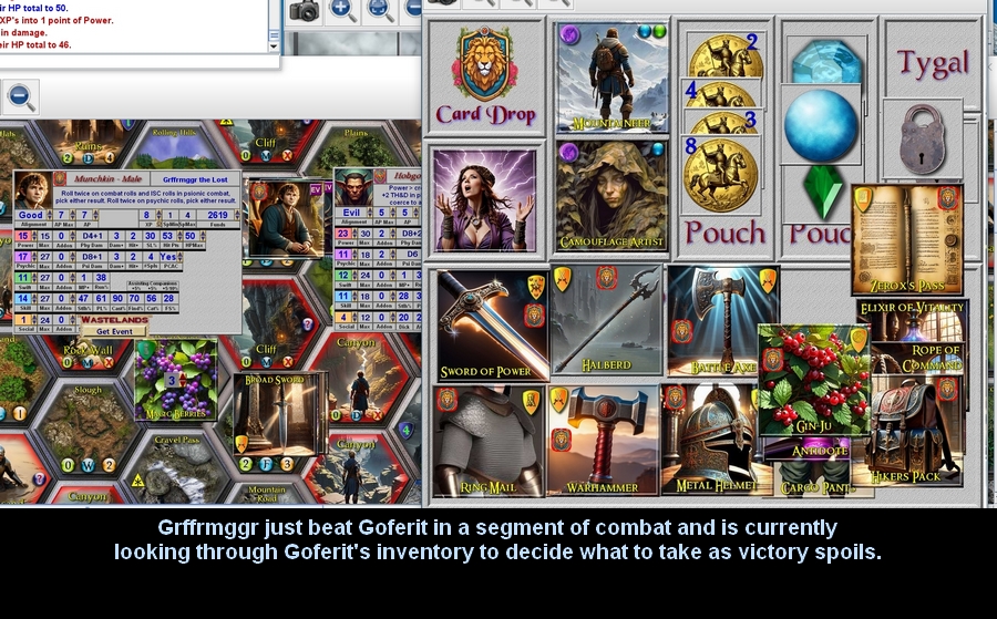 I've had a fully operational version of it for the last few years and my buddies and I have had some grand campaigns lasting 3 to 5 games sessions. So, why haven't I distributed it publicly? Well, I'm not an artist. The game has 2000+ graphics and, since I've always intended to distribute the game freely once it was complete, I didn't see the point in spending thousands of dollars hiring a bunch of artist to make game graphics ...especially considering that, over time, I've already spent about $2000 on it. Because of this, all the graphics used in the game have been downloaded from the web. This is fine for private use but without the rights to any of this artwork, I didn't want to be passing around copies without permission.